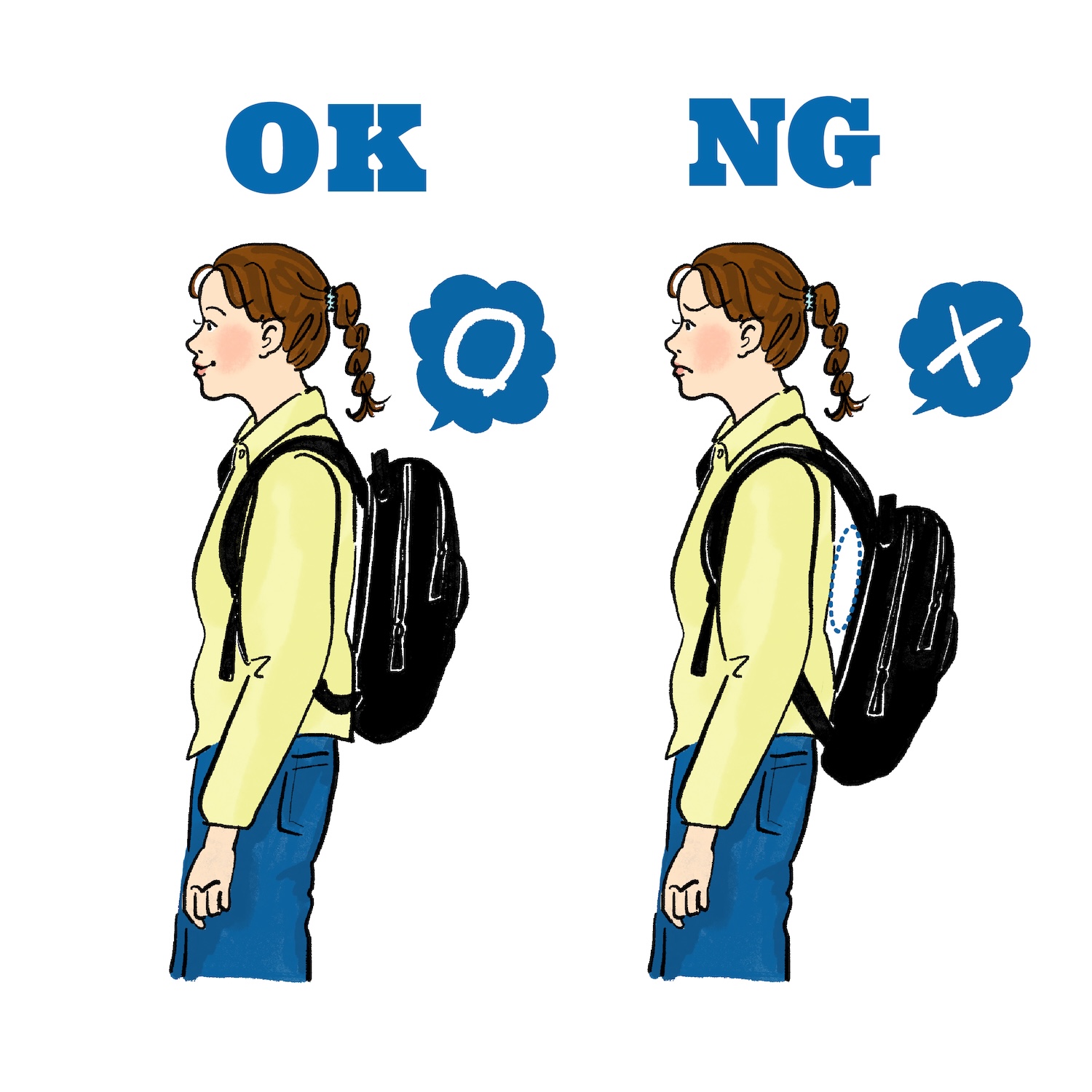 ・バッグの位置は背中の中央あたり
