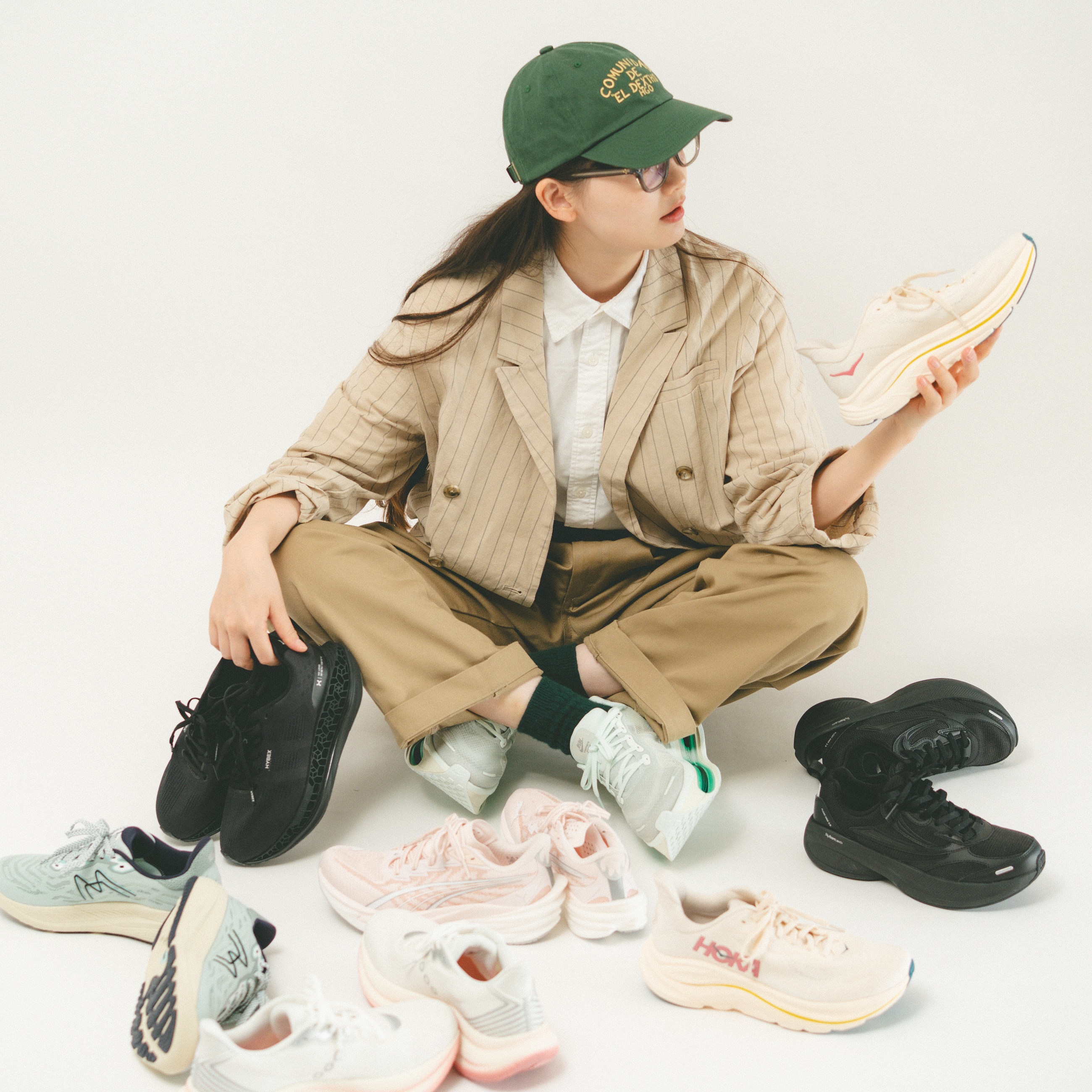 機能性や履き心地の良さを備えつつ、普段のコーディネートに取り入れやすいランニングシューズを⚫︎ピンク × ⚪︎ホワイト、⚫︎ グリーン× ⚫︎グレー、⚫︎オールブラックの3つの配色にフォーカスして、全15足をセレクト。
