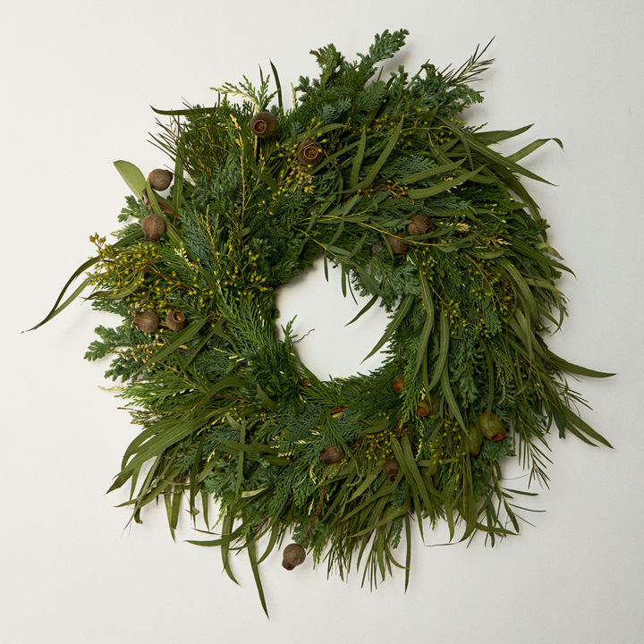 東京の一等地、南青山にひっそりとお店を構える〈ウルス〉は花束はもちろん、リースもおすすめ。季節の針葉樹や木の実を使用したふっくらとしたラウンド型のリース。基本的にドライになっても素敵な花材を採用しているので、長く飾り、愛でられるのも嬉しい。ギフトの場合メッセージカードや御祝札を添えることも可能。¥16500 〜