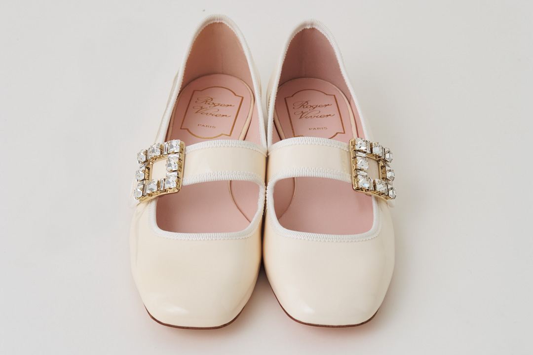 20世紀の三大靴デザイナーに数えられるロジェ・ヴィヴィエによって、1937 年にパリで設立されたシューズブランド。ベルト部分にアイコニックなストラスバックルが煌めく「トレ ヴィヴィエ バレリーナ」は、艶やかなパテントレザーも相まってフラットシューズでありながらエレガント。安定感のある履き心地とフェミニンな足元を同時に叶える1 足。フランスを代表する女優、カトリーヌ・ドヌーヴが同ブランドの虜になるのも頷ける。シューズ[H1cm] ¥179300 / Roger Vivier(ロジェ・ヴィヴィエ・ジャパン)