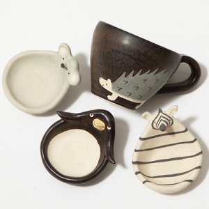 陶器やガラス絵付け、イラストなど幅広く活動。クスッと笑顔になれるユーモアと遊び心で日常をほんの少しハッピーに。ガラスや陶器に描かれる、ファニーな表情の動物たち。
