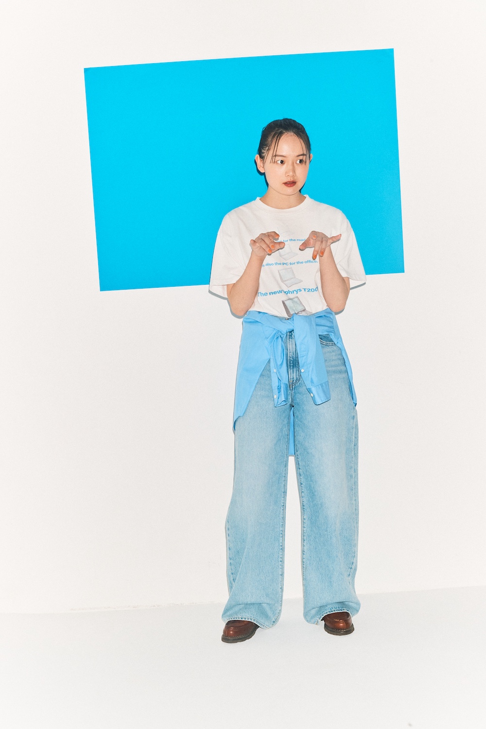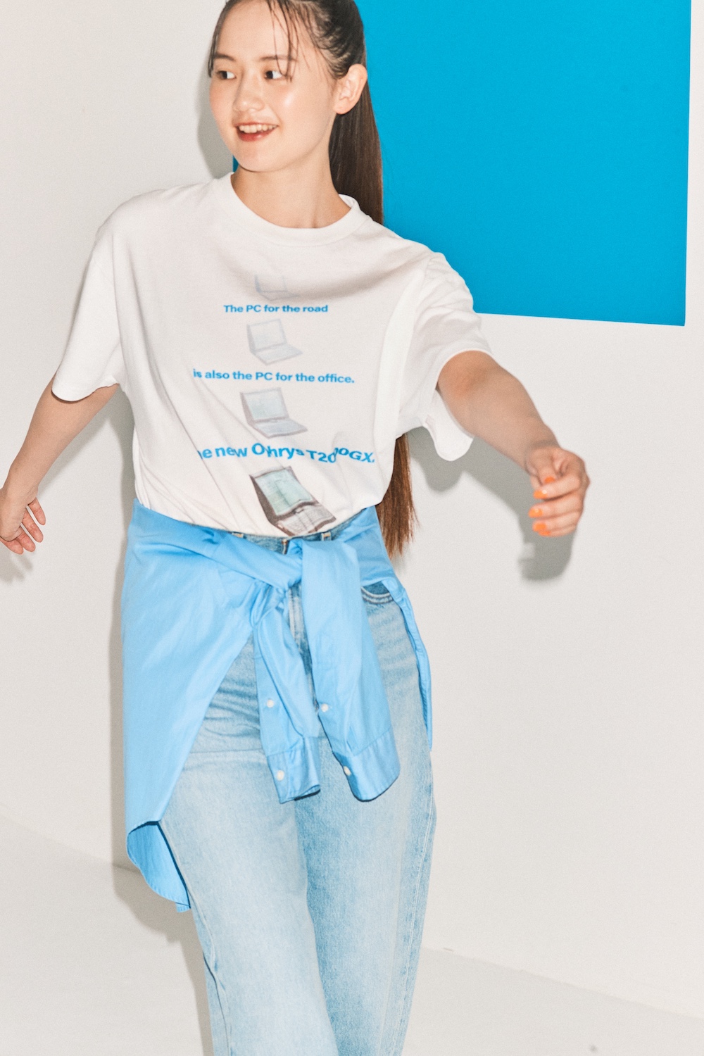 架空のアメリカ総合商社がつくるプロモーションTシャツがコンセプトの《オフリス》。あくまで販促物ではなく、社員に配られたようなデザインにしており、そのラフなムードがヴィンテージTシャツぽくてたまらない。PCのブルーにあやかって、同色で仕上げたスタイル。