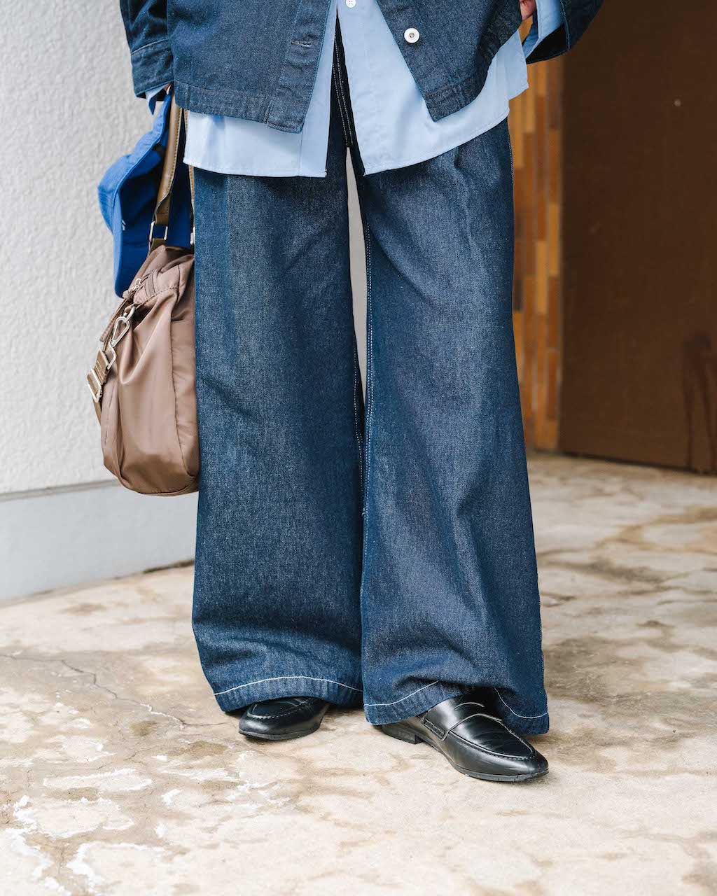 ▶︎デニムオンデニムはインにブルーのシャツを重ねて奥行きのあるコーデに