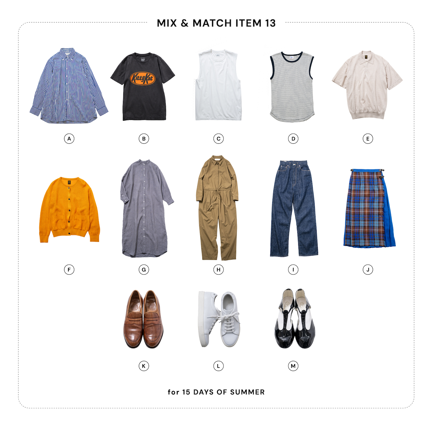 FUDGE 7月号「エミリーの1ヶ月留学記」(P.62〜)と連動し、WEBでも着まわし企画をお届け。お家のクローゼットは着まわしやすい厳選したアイテムだけ、という本屋で働くFUDGE FRIENDうさみ。彼女がこの夏に選んだニットポロシャツやリネンスカートなど13のアイテムを使って、15日間の着まわしに挑戦!仕事もオフも、毎日飽きずにお洒落を楽しむためのヒントを見つけましょう。