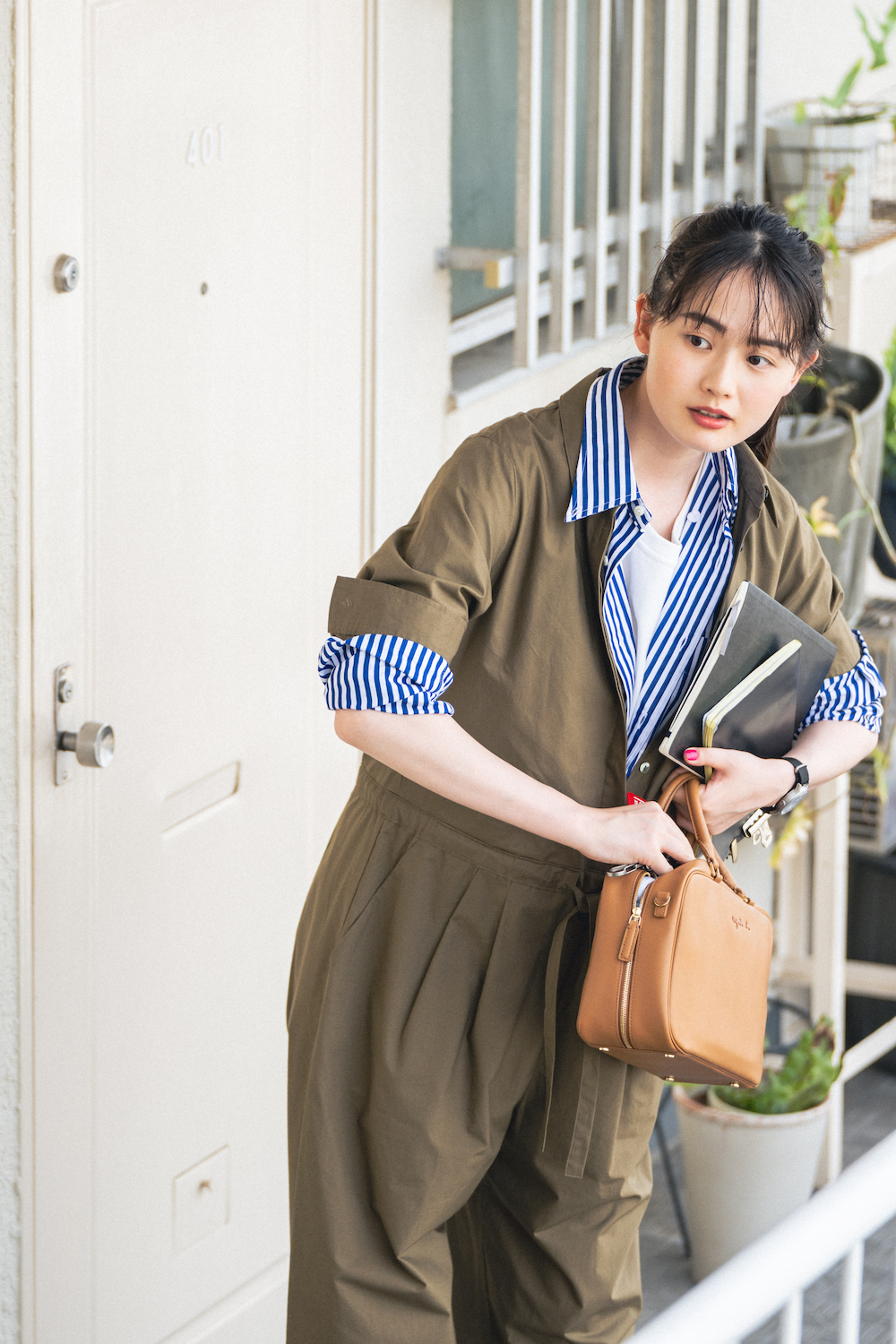 今日は仕事終わりに友達とディナー。ちょっと小綺麗にして行きたいから、ジャンプスーツからストライプシャツを覗かせてきちんと。さらに白TもINして抜け感を作ると、ほど良くワーク感が払拭されて、ラフさと上品さがちょうど良いバランスに仕上がります。パンプスやレザーバッグを合わせて、さらに上品さをプッシュ。