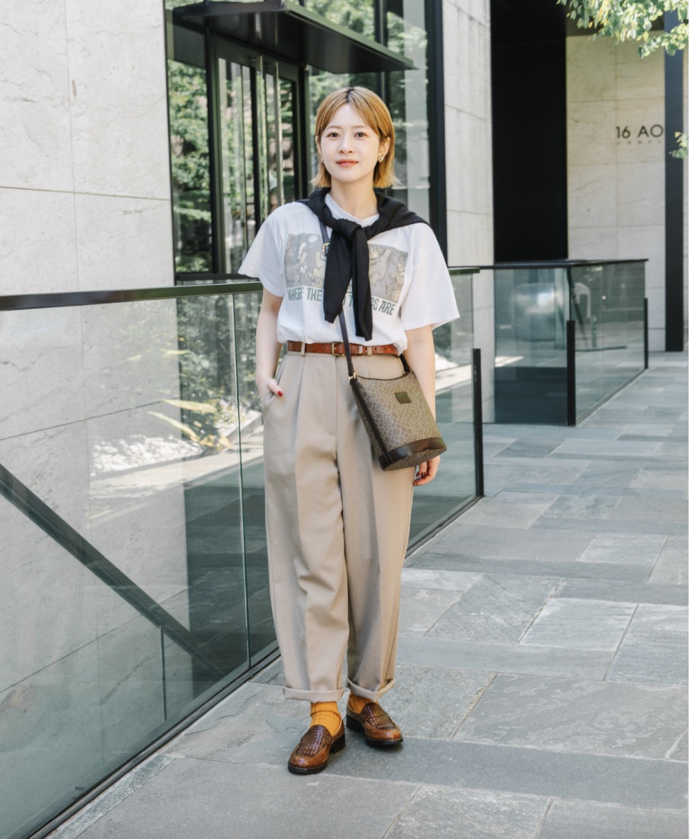 第3位:定番のTシャツ×チノパンも古着を選ぶとおしゃれに個性がプラス