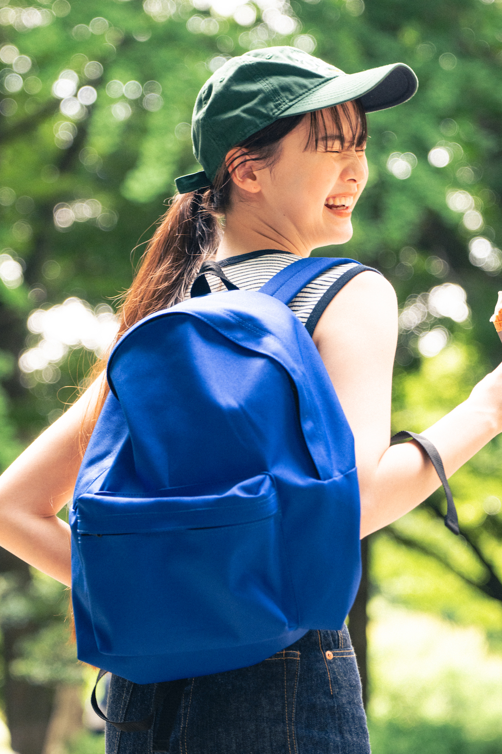 キャップ¥8580/BLUESCENTRIC(メイデン・カンパニー)、ベルト¥10450/agnès b.(アニエスべー)、時計¥17600/CLUSE(クルース)、バッグ¥8250/Marie-Louise(ラヤン)、デイパック¥14960/MidiUmi(マザーズインダストリー)、ソックス/スタイリスト私物