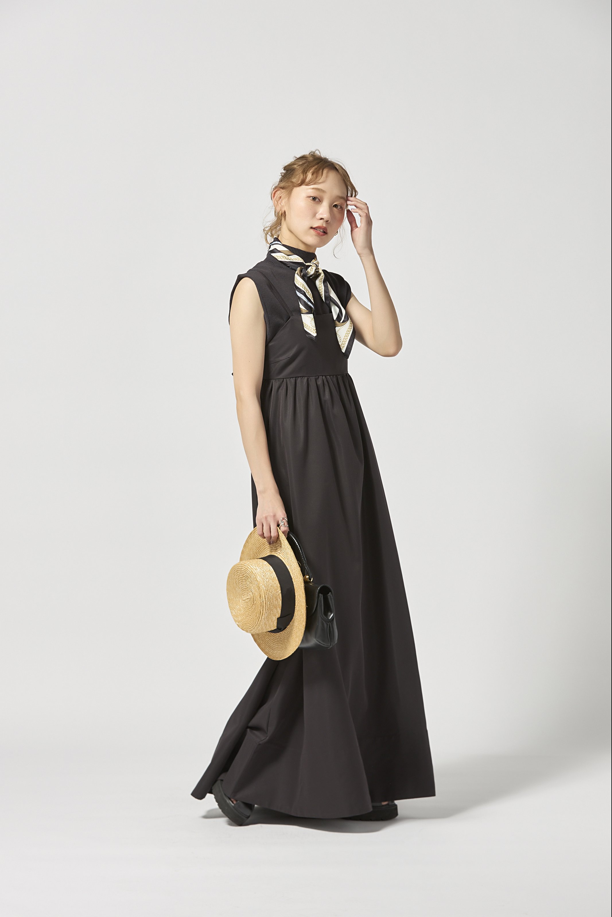 夏こそ黒のワントーンコーディネートを楽しみたい!重くなりがちな黒は肌見せして抜け感を作るのがマスト。スカーフやカンカン帽で華やかさを添えれば、デートにぴったりなレディな装いが完成。
