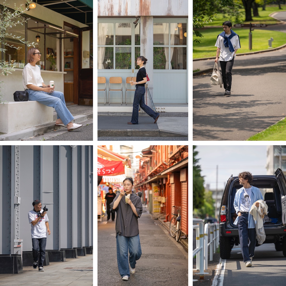 3か国語以上を扱い、海外撮影の多い古谷さん。今回トップスに選んだのは、パリの人気カフェ『Café Charlot』のTシャツ。首にさらっと巻いたスカーフが効いて、カジュアルながらも大人のエスプリ感がある。 「個人的にはシンプルなものが好き。普遍的なもの選んで、自分の体型に合わせたサイジングで着こなします。あと撮影の時は動きやすさも重要なので、ミニマルな格好が多いです」 そんな古谷さんが履いているのは、スリムセルビッチジーンズ。ヴィンテージのような独特の風合いに不滅のスタンダード感が漂う1本です。 「オーセンティックなセルビッチジーンズに見えるけど、これはすごくストレッチが効いていて、ストレスフリー。見た目はスタンダードで、実用性があるのはとてもいいですね。」 デニム老舗「カイハラ」の熟練した職人とともに旧式織機をコンバージョンして開発したという、オリジナルデニム生地。ちょっと懐かしい表情をもつ生地が、ストレッチ機能をもたせた最新素材というギャップは、服好きには大きな魅力のひとつです。