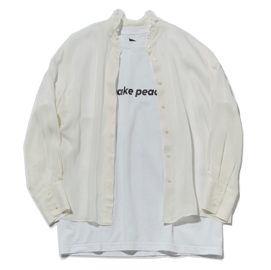 白が持つクリーンな印象を利用すれば、いつものロゴTシャツとシャツにイノセントな雰囲気が宿る。