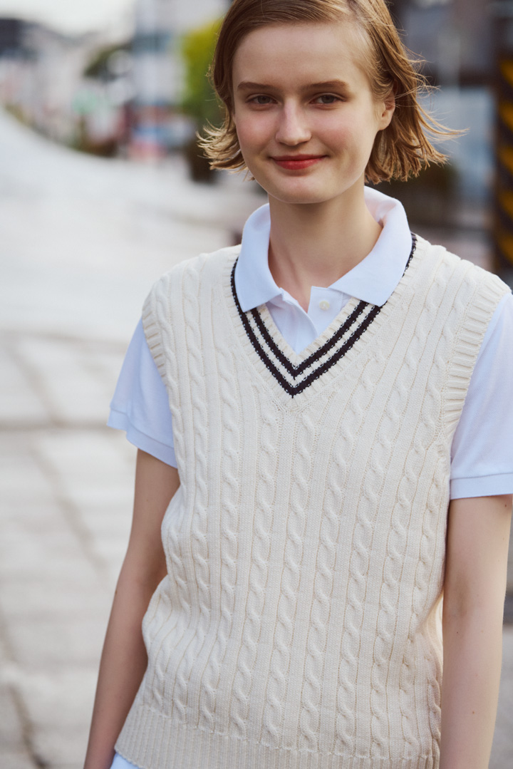 ポロシャツ¥17600/LACOSTE(ラコステお客様センター)、ベスト¥29700/SLOANE(スローン)