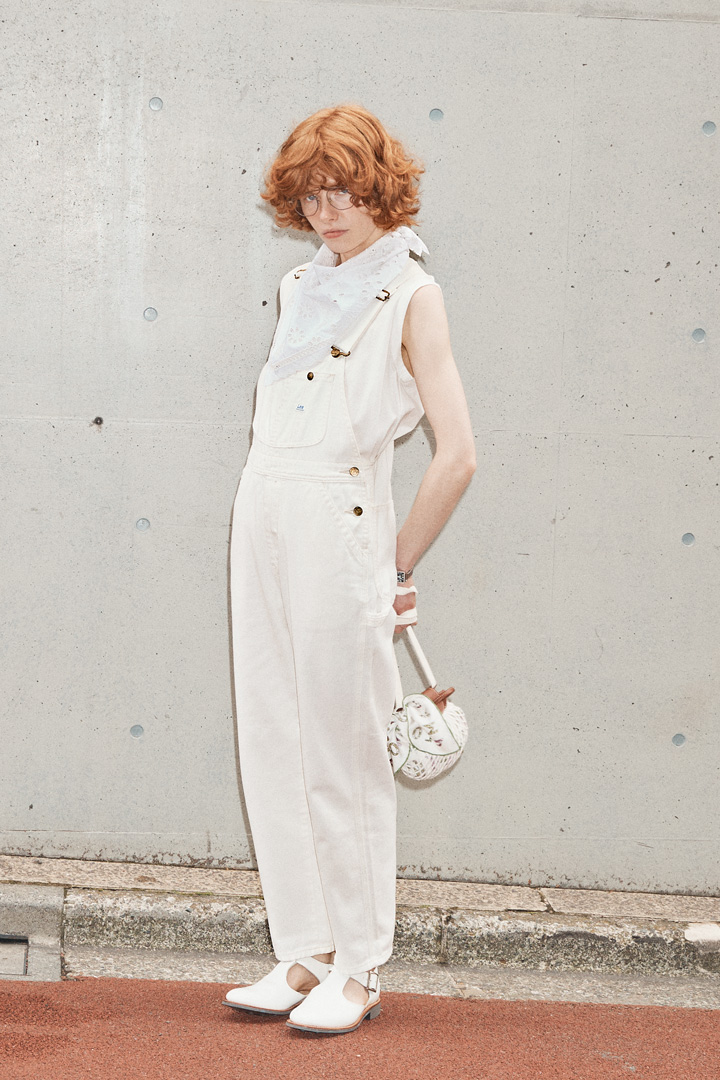 いわゆるオーバーオールは難易度が高い場合、おすすめは断然ホワイト!レースのスカーフやバッグで個性と甘さを重ねたら、愛嬌もたっぷり。ホワイトのキャンバスをどう味付けしようかな? 妄想が無限に広がる。