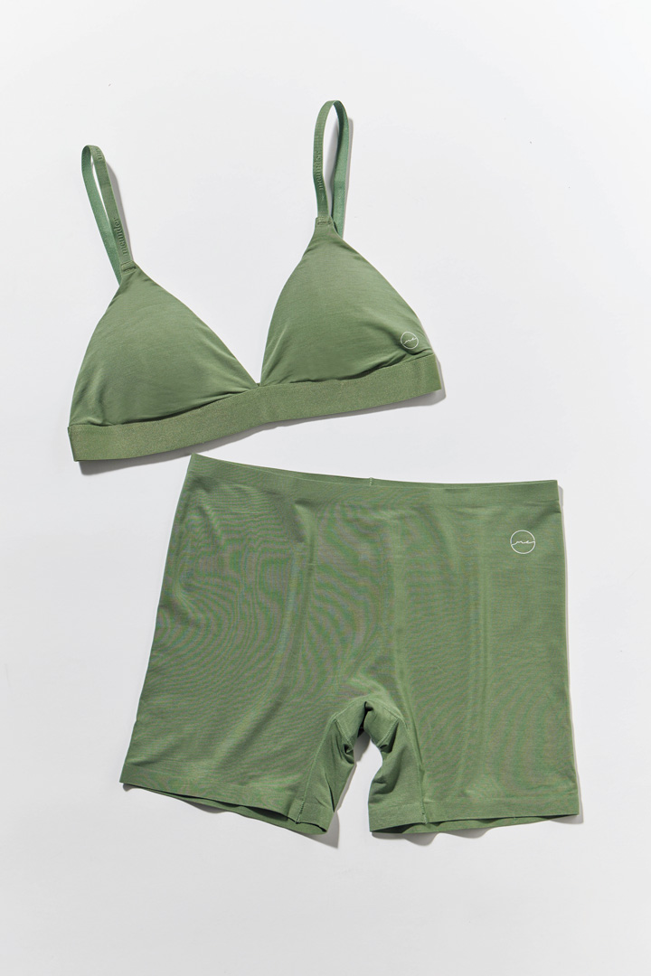 アンダーウエアブランド《ミアンダー》のブラとショーツ。国際的に評価されている〈レンチング〉社のテンセル™マイクロモダール素材を使用しており、人の肌にも環境にもやさしいつくり。