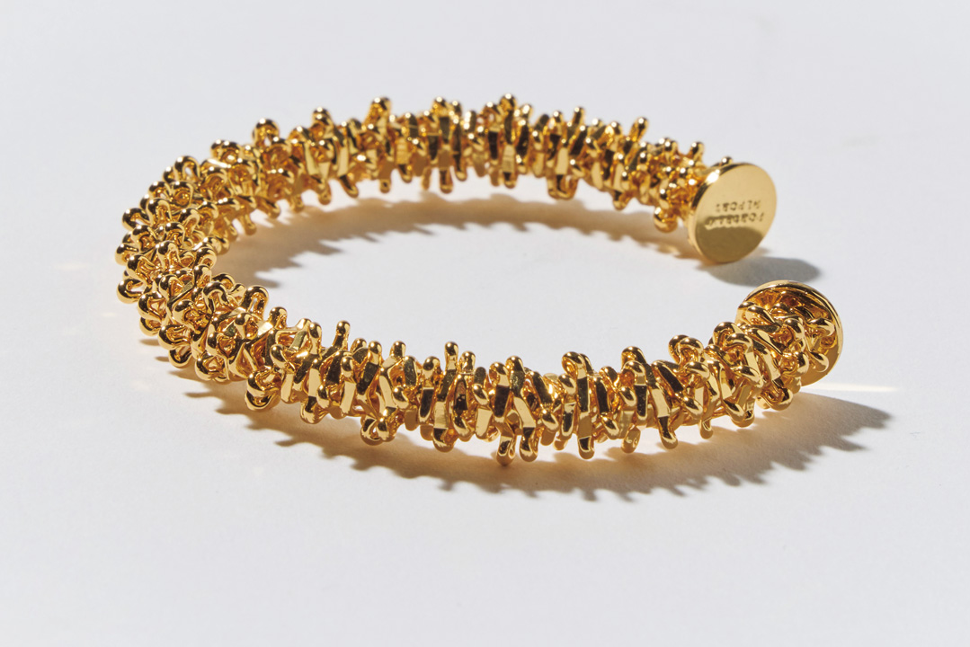 《ポートレートリポート》は、ユニセックスのアクセサリーを提案するブランド。バングル型のブレスレットの荒々しいデザインは、“壊れた彫刻”をイメージしてデザインされたものだとか。ゴールドとシルバーの2色展開。