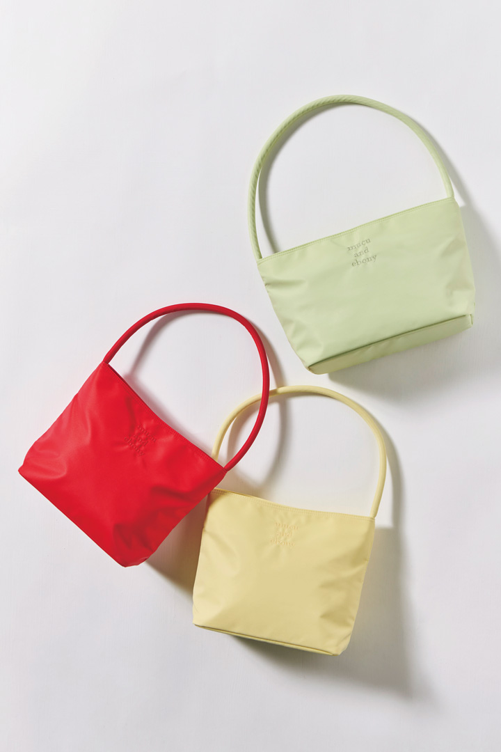 (赤・黄)[ H20 × W28 × D9.5cm] ¥ 8150、( 緑)[H18 × W32 ×D10cm]¥7770 / mucu and ebony(ハナ コリア)