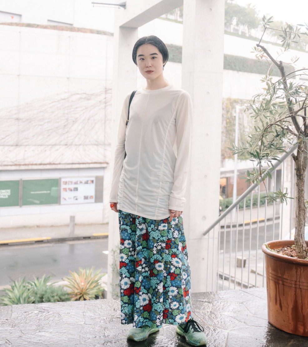 花柄スカートとランニングシューズの意外な組み合わせがいい!