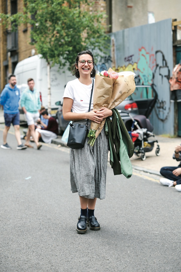 ドクターマーチンが効いてる!黒×白のギンガムチェックスカートのコーデ