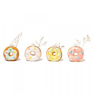キュンとしてついそばに置いておきたくなる愉快な陶芸作品を制作しています。お花がない時も置き物としても可愛いしろくま花瓶。一つ一つ手びねりで成形しているためしろくまの表情や体つきも個性があります。お気に入りのしろくまを見つけてください。ゆるやかなクマの表情と美味しそうなスイーツが織りなす、なんとも愛らしい陶器たち。お部屋の雰囲気をぐっと華やかに変えてくれる存在感で、毎日のインテリアがもっと楽しくなりそう。
