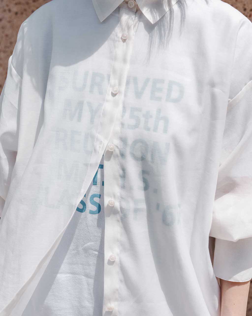 コーディネート5:シアーシャツから透けるロゴが洒落見えポイント