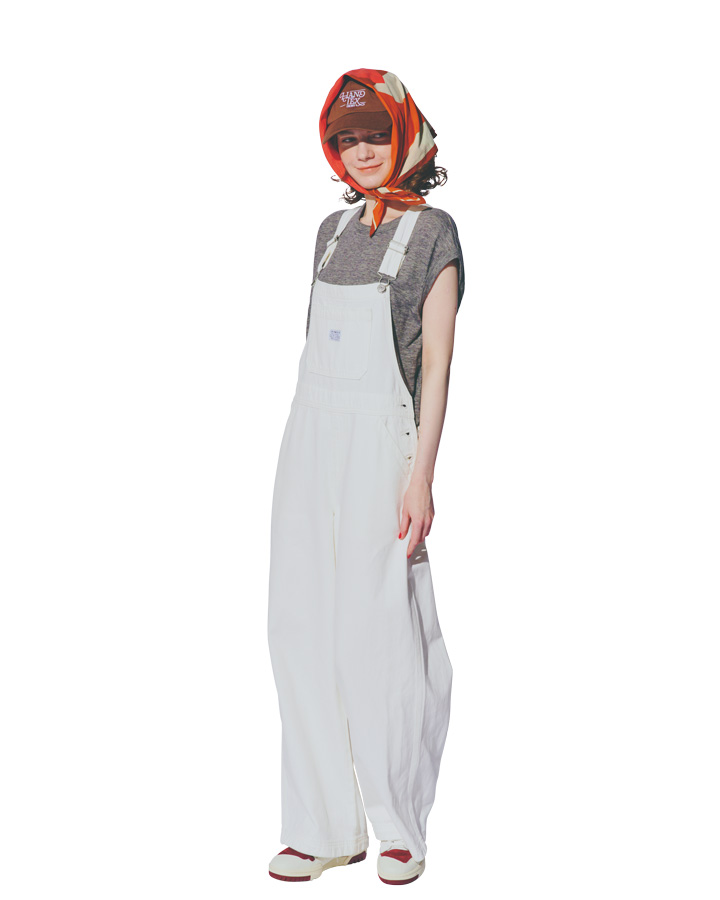 小物もレイヤードしてみない? 例えば、ボーイなキャップにレディなスカーフをクルッと女優巻き。するとたちまち、オーバーオールスタイルが洒落感たっぷりに仕上がるし、日差し対策もできて二度おいしいね。