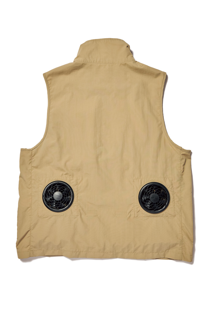 ファン付きウエアのパイオニア的存在〈空調服®︎〉と《キウ》がコラボレーションした新作。カーキとブラックの展開も。