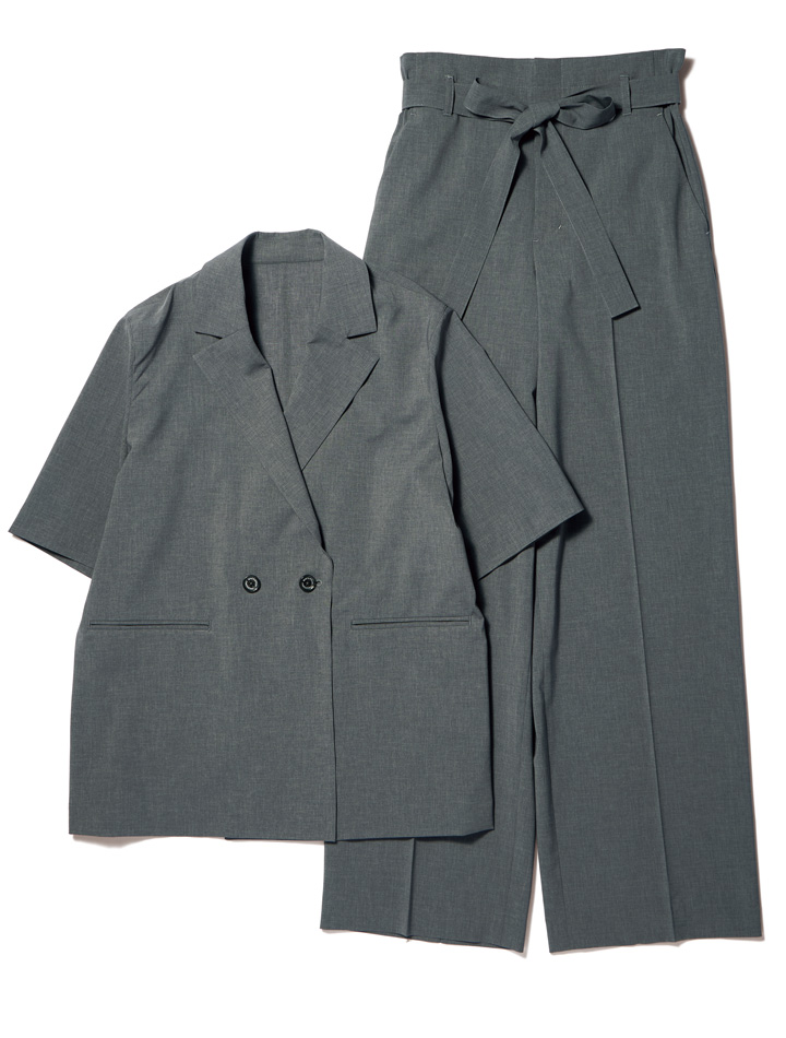 吸水速乾、防シワ、ストレッチ性に優れ、ウォッシャブルな素材を使用。セットアップでどうぞ。