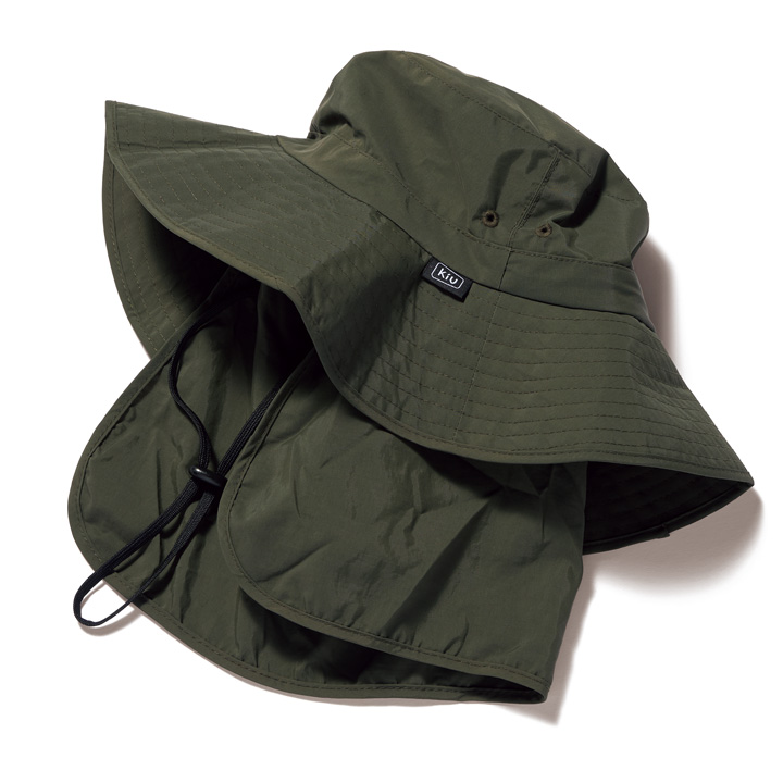 取り外し可能なサンシェード付きのハット。UVカット率は95%以上、はっ水・防水加工もあるので晴雨兼用できる。さらに接触冷感も備えているの、すごくない?