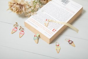 《ACE embroidery》が開催するワークショップはオーガンジーというドレスなどに使われる透け感のある布に手刺繍でアイスクリームモチーフを刺繍します。5色のフレーバーの中からお好きな色を選び、コーンの上にアイスを縫っていきます。スパンコールも縫い付けて、キラキラかわいいモチーフが完成。最後にしおり、ピアス、イヤリングの中から1つ選び仕上げます。