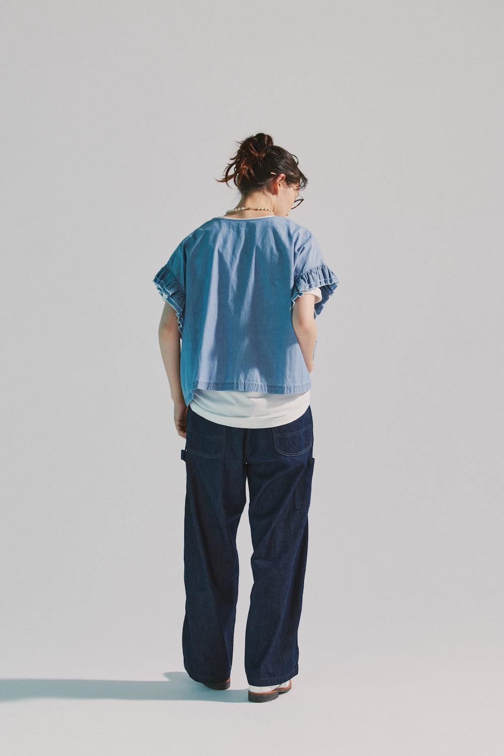 夏もデニムを楽しみたい、というFUDGEガールは多いはず。そんな時なライトな9オンスのデニムパンツの出番!《ブルーブルー》のペインターパンツなら細すぎず太すぎない、すとんと落ちるストレートシルエットでこなれた印象も手に入ります。そこにシャンブレーシャツでブルーの濃淡をつければ、重たくならず涼やかなムードに。白Tを挟んで、一層爽やかに仕上げましょう。