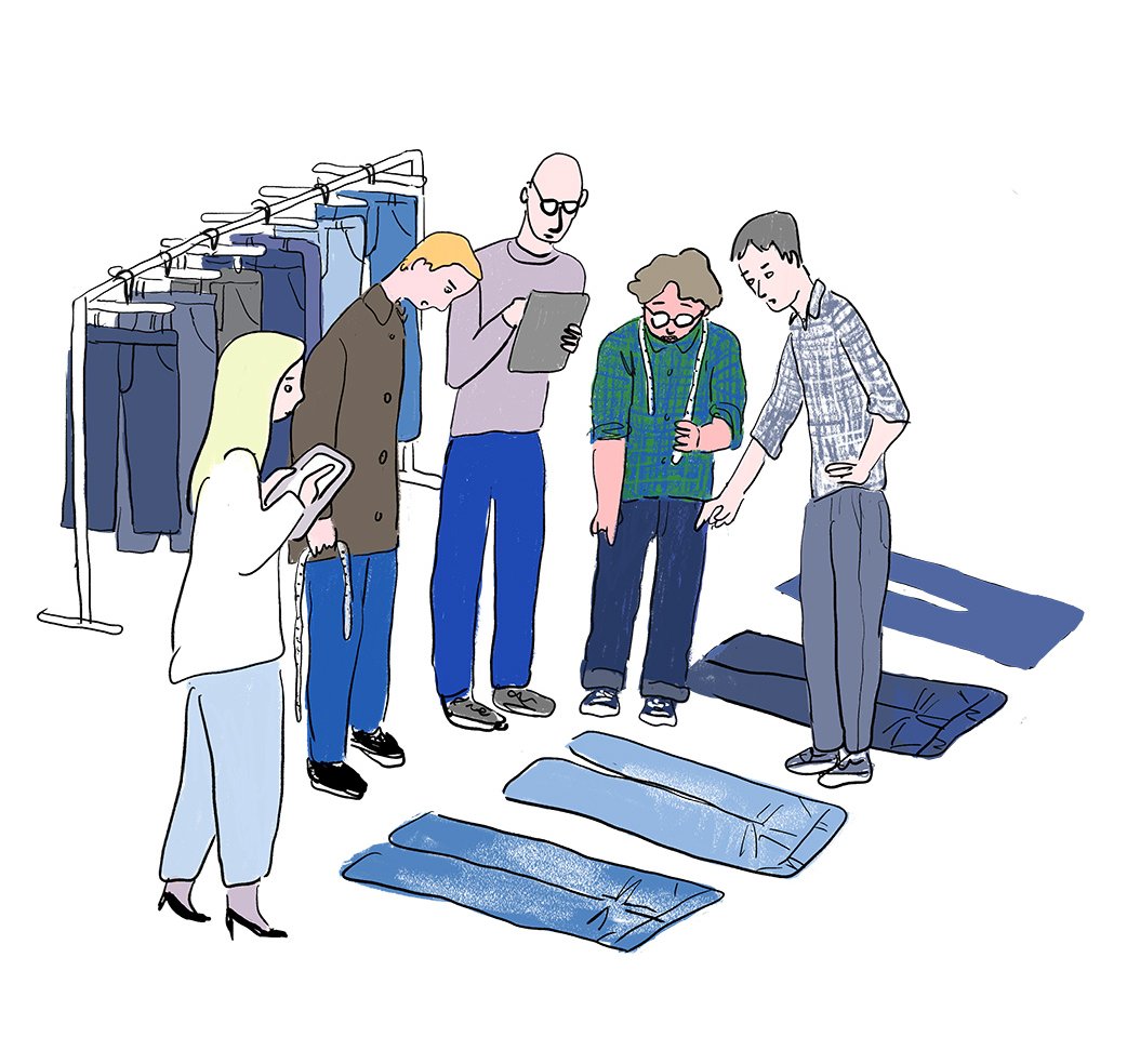 Made for All―いまを生きるすべての人々に、いま穿きたいジーンズを届けるために、世界中のファブリックメーカーと協業して素材開発を試み、オリジナルのデニム生地を生み出しているといいます。その上で、最先端のデザインやトレンドを取り入れた極端に振り切ったプロトタイプからスタートし、毎日穿いても心地いいデザインを求めて、誰でも着こなせるパターンを探求。