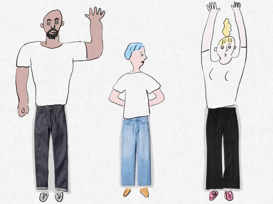 さらに、ユーザーからのフィードバックと、世界のいろいろな地域から社内モニターを募って試着を繰り返します。気持ちのいいフィット感や誰でも似合うシルエットは、実際に試着した人の着用感をベースに少しずつ調整されるのだそう。どんなコーディネートとも相性がいい“着こなしやすさ”を吟味するのは、“ジーンズだけが特別に目立つのではなく、スタイルの1パーツに選ばれる”のが UNIQLO JEANSが描く理想だから。