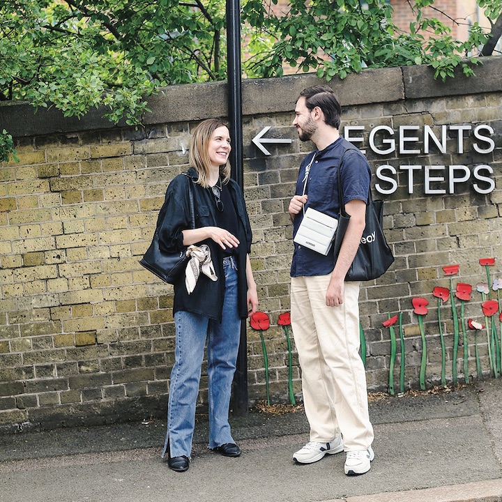 カラッと晴れたストックホルムの秋空をそのまま映したようなブルーのシャツと、イエローのカンケンバッグの組み合わせ。スウェーデンカラーでフレッシュな風を吹かせた、シンプルかつ爽快なコーディネート。
