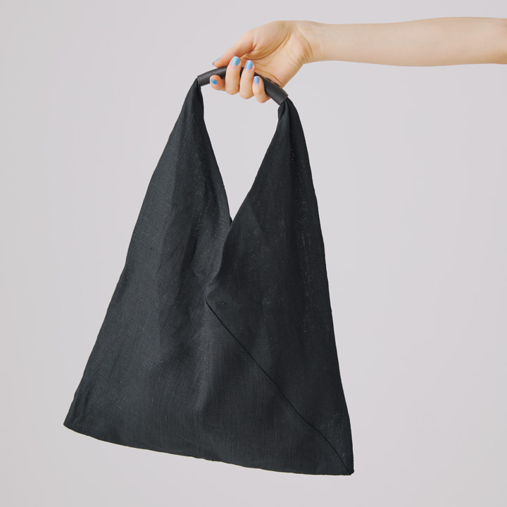 厚手のリネンを採用した「マタノ バッグ」は、持ち手の部分にレザーが縫い合わせられており、クールな印象で持てるのが嬉しい。