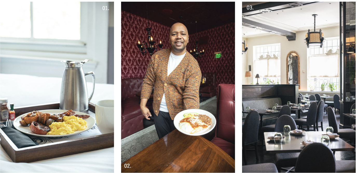 03_ハリウッドの黄金時代の優雅さが漂う〈シャーリー・ブラッスリー〉では、地元の食材を使った洗練されたクラシック料理を堪能できる。