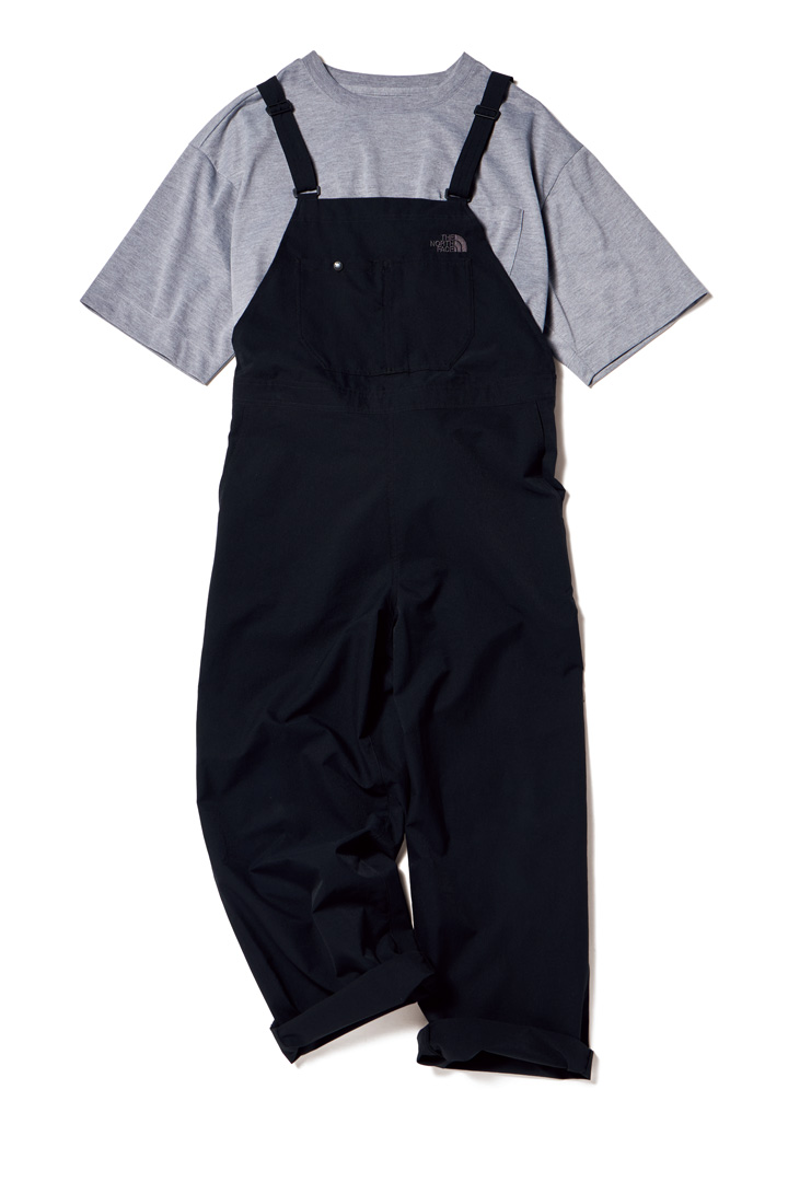 上のシャツと同じく「インセクトバリヤー素材」を用いたTシャツ。虫が生地に触れると落ちたり、逃げたりする“着るだけ防虫”に加え、UPF20のUVカット機能も完備。¥8360/MILLET(ミレー・マウンテン・グループ・ジャパン・カスタマーサービス)、肌への刺激が少なく、洗濯耐久性もある虫よけ加工「ウィズ リリーフ」を採用。脚がスッキリと見えるスタイリッシュなシルエットで、洒落感もバッチリ。オーバーオール¥24200/THE NORTH FACE(ゴールドウイン カスタマーサービスセンター)