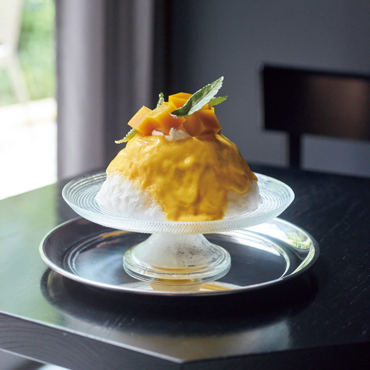 トッピングの“マンゴーよりマンゴー”は、果肉とドライマンゴーをミックスすることで濃厚な甘みを凝縮。自家製カスタード入りのマンゴーババロア、甘さと酸味が絶妙なマスカルポーネとともに口の中で合わされば、幸福度はMAX! 氷の2層目には、カルダモンやココナッツ、食感が楽しいクランブル状のブルーチーズなど、エキゾチックな味変トッピングも隠れていて、飽きずにペロリといただける。東京都港区虎ノ門5-8-1 麻布台ヒルズ ガーデンプラザA B1F 火~日13:00~17:00/月定休 ※かき氷はカフェタイムのみ(火〜土 17:00以降はディナーGallery & Restaurant 舞台裏 タイム) https://artsticker.app/ja/butaiura @butaiura_artsticker