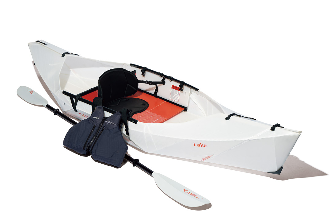 日本の“おりがみ”から着想を得たという折り畳み式のカヤック。慣れると最短1分で組み立てられるという本体は、乗り場が広く、安定性にも優れていて、釣具を乗せたり、ペットと同乗することも可能。スターターセットには、パドルとライフジャケットも付属。初心者は、波がおだやかな湖からスタートするのがおすすめ。