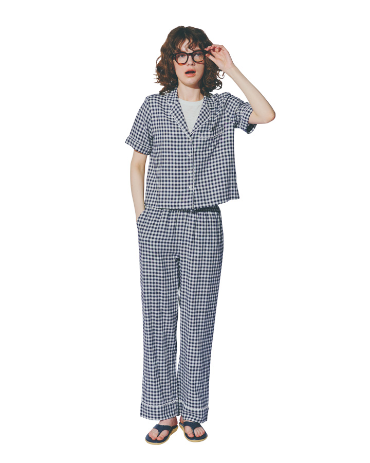 (上)¥6990、(下)¥6990[ともにオンライン限定]/ともにGap(ギャップ)、タンクトップ¥8250/SOIL(ビューカリック&フロリック)、メガネ¥27280/Ray-Ban(ルックスオティカジャパン カスタマーサービス)、サンダル¥28600/ISLAND SLIPPER(ジーエムティー)