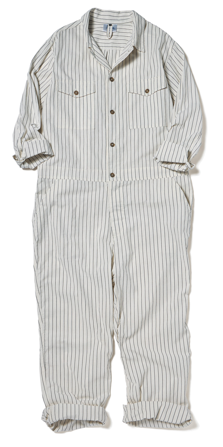 煙突掃除用ジャンプスーツをベースに、綿麻素材でナチュラルな風合いに。