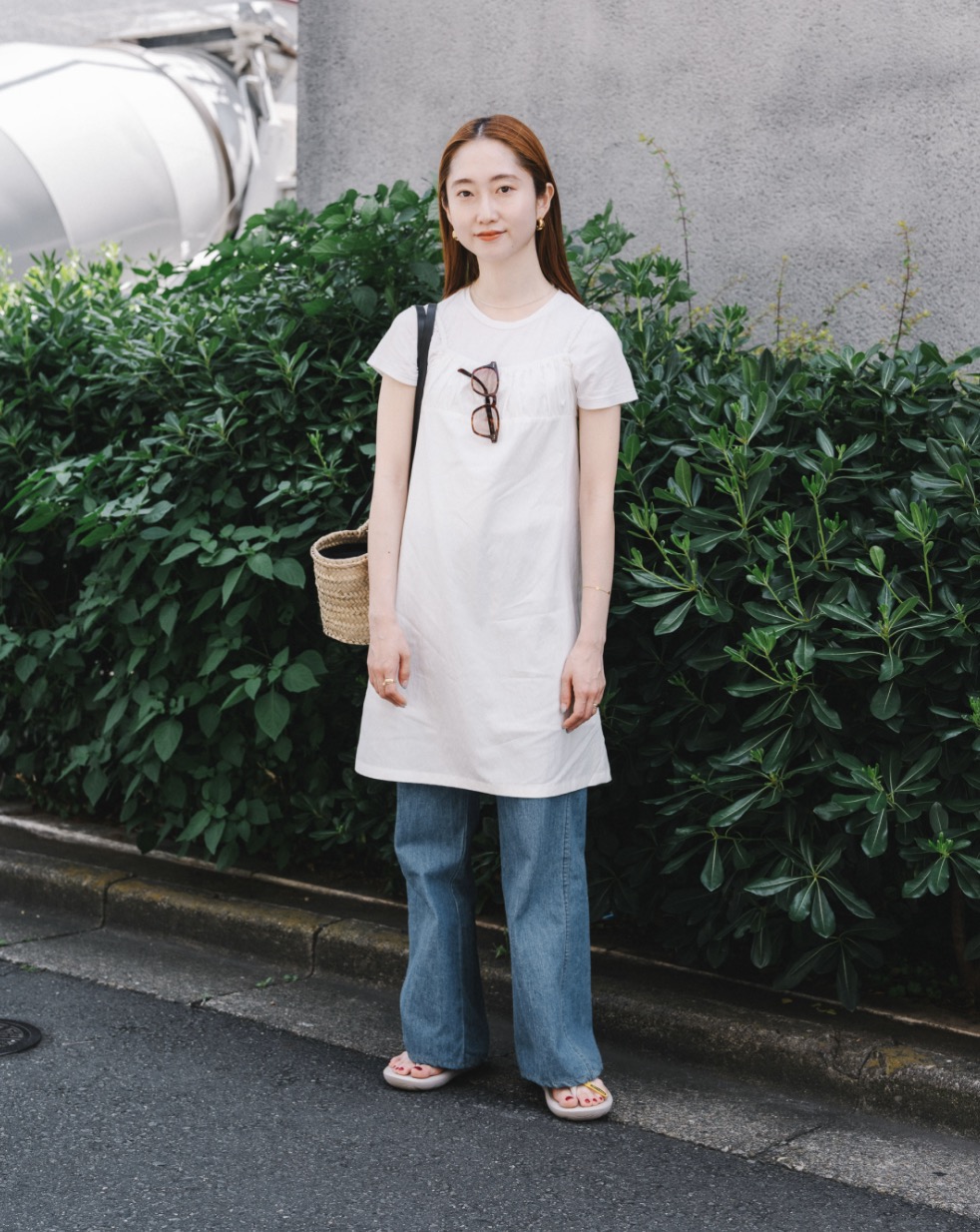 - 1 第5位:白Tシャツ×デニム、今年はキャミワンピを重ねるのが大正解!カゴバッグやサングラスなどの小物遣いもマネしたい