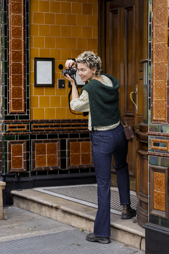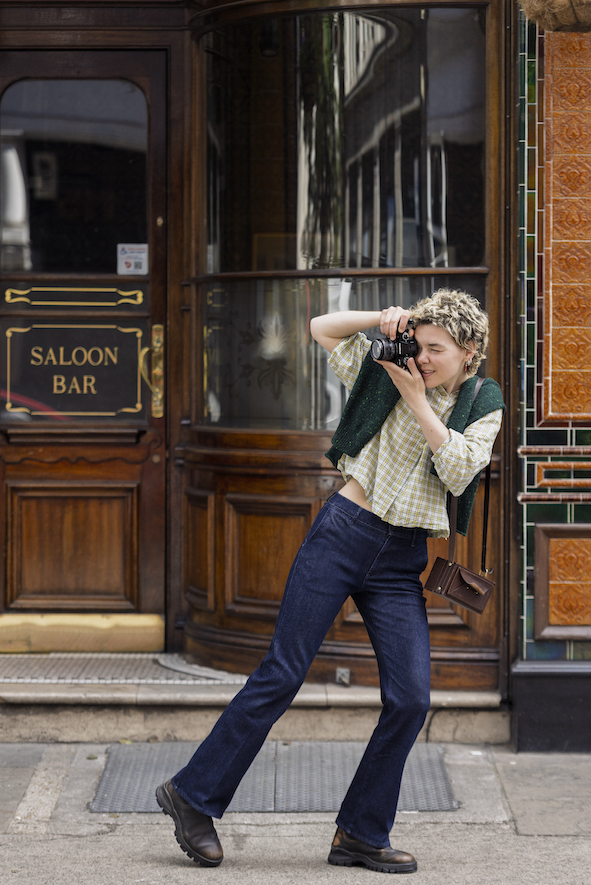 映画やテレビ番組の衣装さんとして活躍する傍ら、パーソナルスタイリストとしても活動の幅を広げている彼女は、いつも大きなスーツケースでセントラルロンドンを駆け回っている。そんな彼女の日常、衣装リースの道すがらを偶然、FUDGE ロンドン班がハント! UNIQLO and JW ANDERSONのジーンズのファンで、過去シーズンのモデルも愛用中。
