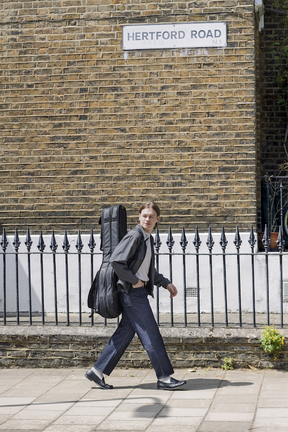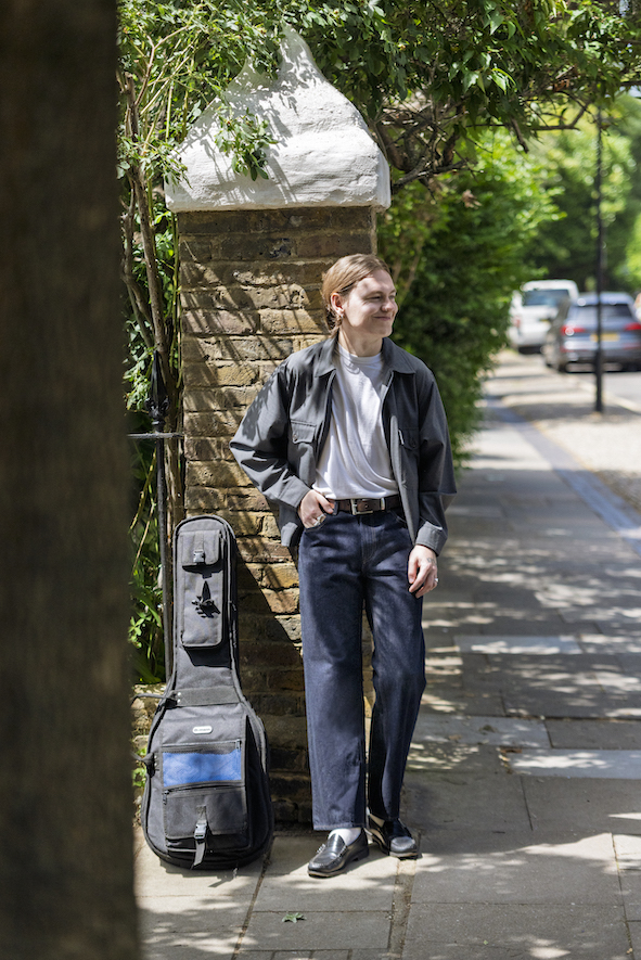 バーミンガム発のスローロックバンドOutlander(@outlandertheband)など2つのバンドに所属して音楽活動をしているギタリスト。日頃はワイドパンツやオーバーサイズのシャツでルーズなシルエットを着こなすのが好みだという。トレンドを自己流にアレンジするのが得意。