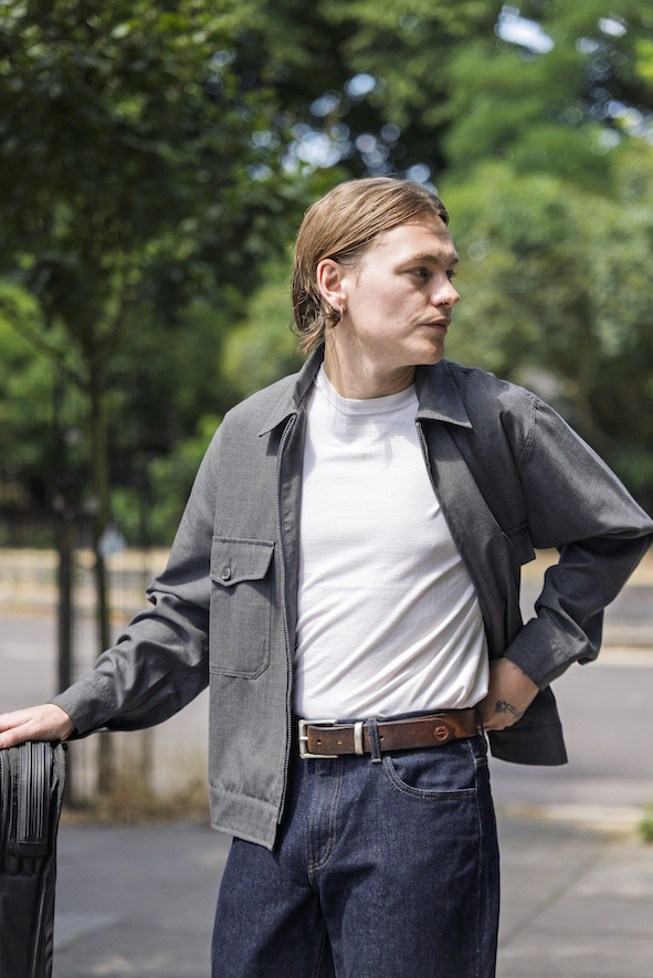 日本生まれ日本育ち、留学のため移り住んだロンドンで、二郎系ラーメンが恋しい日々を送る学生。日本ではファッションモデルとして活躍していた彼の普段着、実はストリート系がメインだという。TPOに合わせ、細身を生かしてタイトなアイテムも難なく着こなす。移住以来、毎日のように通るカナルが自分を取り戻すサードスペースになっているそう。