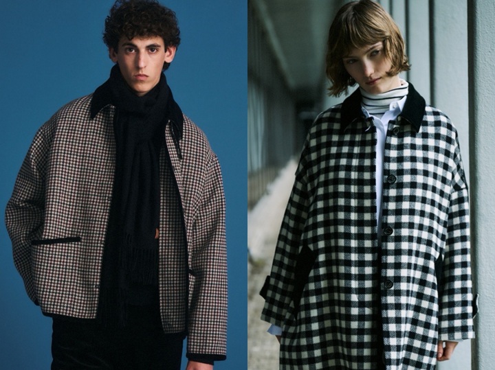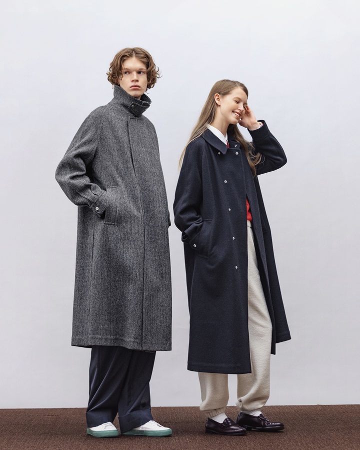 男女でシェアできるユニセックスのアウターウエアや、同じ柄を使った男女それぞれのアイテムなど、ユニセックスなムードの軽やかなコレクションです。
