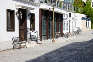 目黒駅を出て3分ほど歩くと右手に見えてくるのはヨーロッパの雰囲気が漂う素敵なアパートメント。日がよく当たる、大きな木製の扉が見えてきたらファッジウィークエンドの世界はすぐそこです。会場に入ると目の前に広がるのは、ヨーロッパの街角のようなおしゃれなSHOPやカフェが並ぶ1つのSTREETです。奥には教会もあり、会場内のどこを切り取っても絵になる素敵な空間です。夕方には街灯も点灯し、また違う雰囲気を楽しめます。