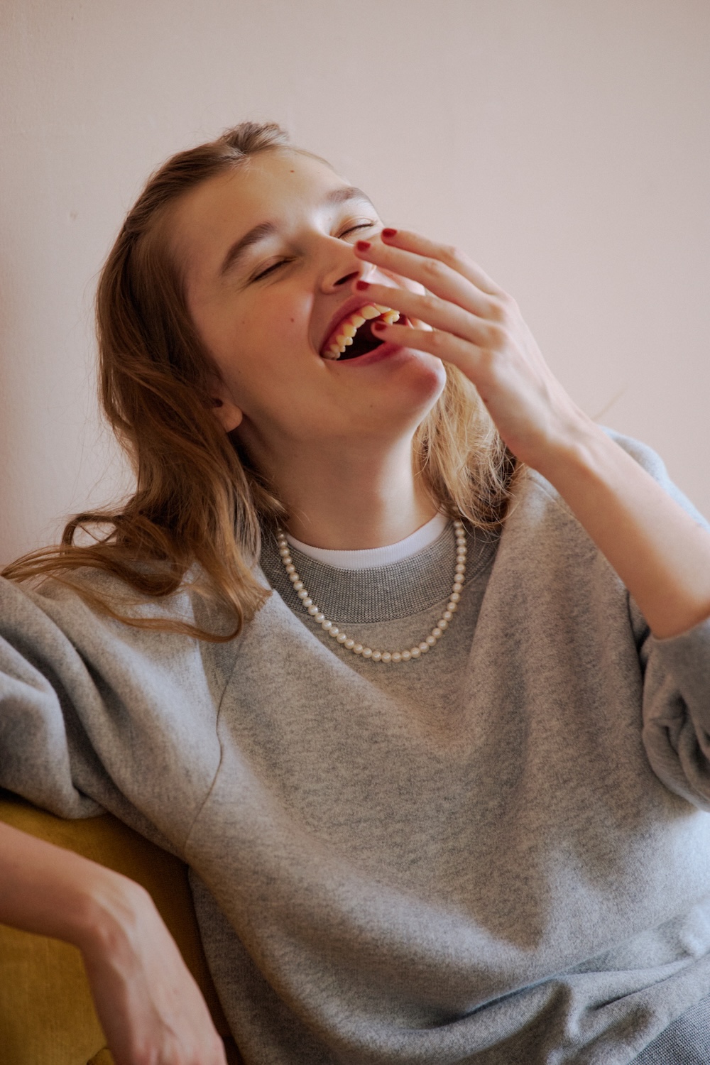 スウェットとパールって、実はとっても好相性。スタイリングの仕上げにパールネックレスをひとつ添えるだけで、なんてことないカジュアルがたちまちシックな雰囲気を帯びてレディの装いへとシフト。肩肘張らない、ちょっぴりよそ行きの着こなしに。