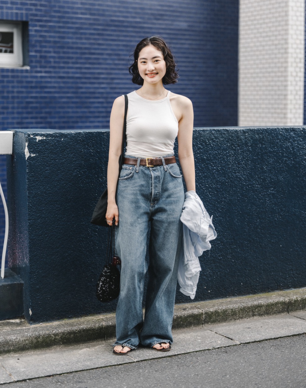 第1位:白タンク×デニムでシンプルコーデは小物遣い洗練された印象に