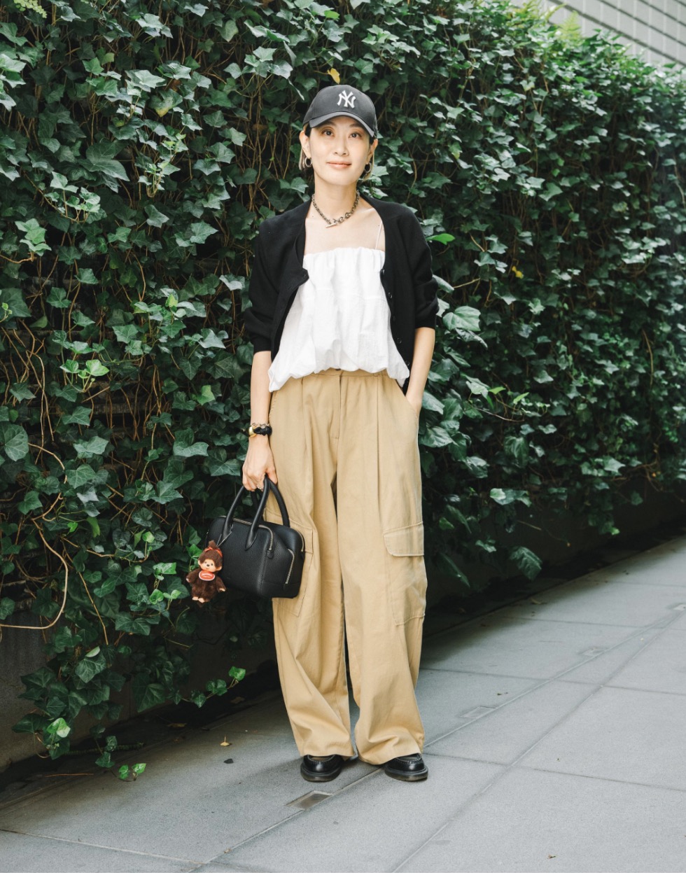 第3位:大人のカーゴパンツコーデはモノトーンで上品にまとめて