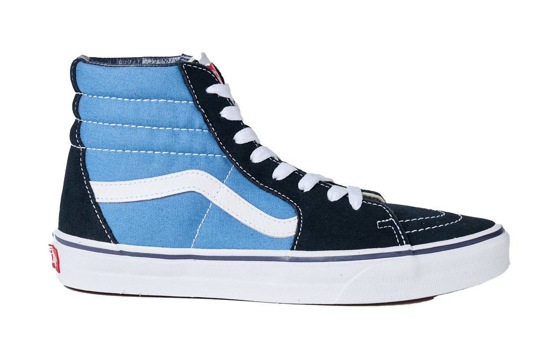 70年代初頭から、多くのスケーターたちの足元を支えてきた《ヴァンズ》のスニーカー。今も不動の人気を誇るハイカットモデル「スケートハイ」は、アイコニックな「オールドスクール」と同じ1978年頃に発売されたもの。サイドのサーフラインが特徴的。