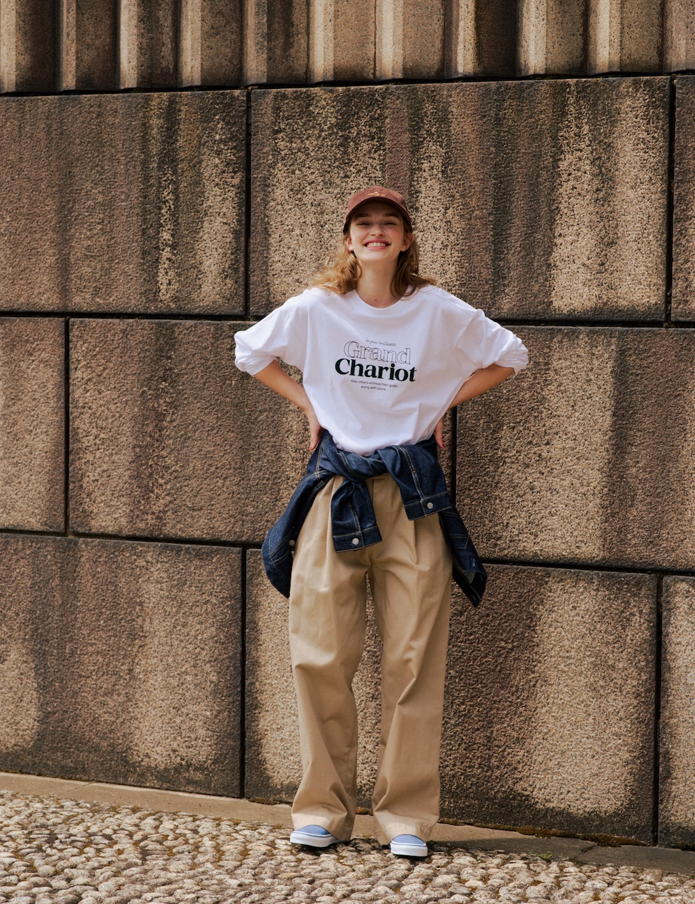 シンプルカジュアルコーデは、プリントTや小物使いでアクセントをプラス。